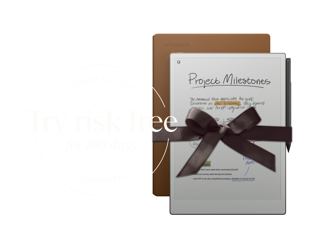 From 10.3” on reMarkable 2 up to 11.8” on reMarkable Paper Pro, there’s now more space for bigger ideas, full size documents, and more information at a glance. reMarkable Paper Pro is still portable, thanks to being just 5.1 mm thin — still slimmer than your smartphone.