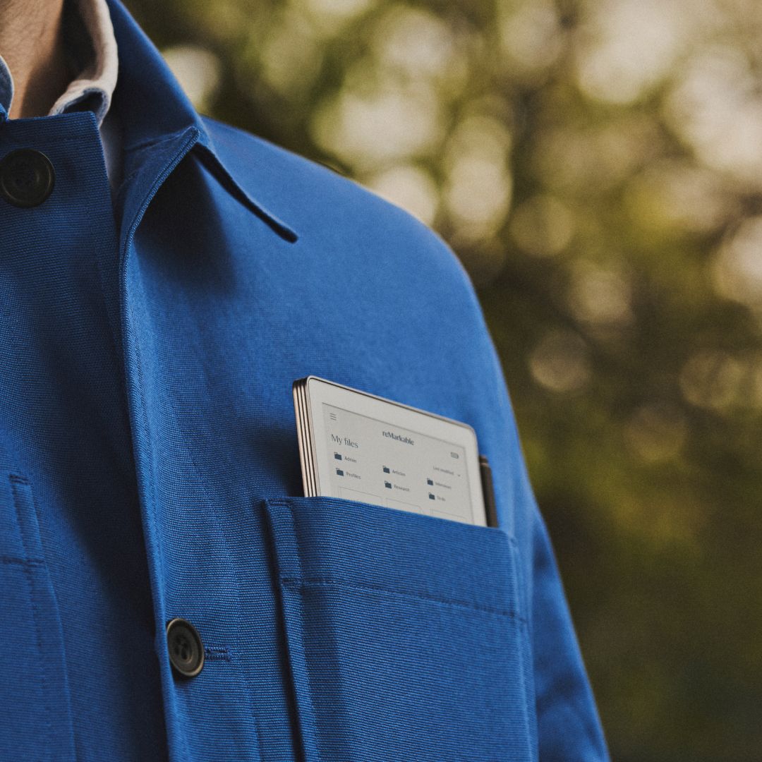 Your entire desk, in your jacket pocket. Smaller than a paperback, reMarkable Paper Pro Move holds all your notes, to-do’s and documents.
