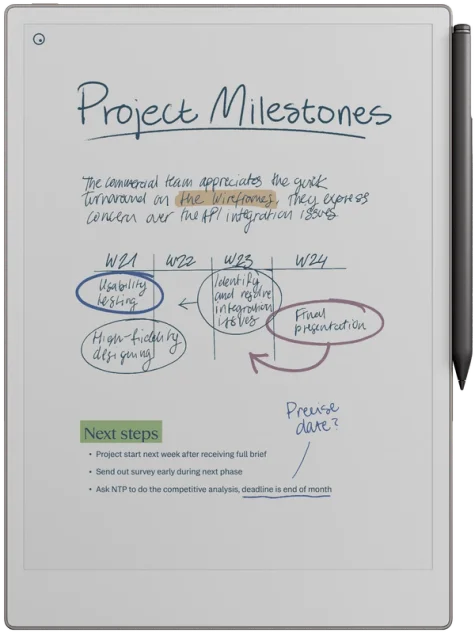 Die praktischen Farbfunktionen helfen Ihnen dabei, Ihren Workflow zu verbessern und direkt in bestehende Dokumente zu schreiben. Markieren Sie Ihre Notizen und Präsentationen auf dem großen Farbbildschirm, auf dem das Lesen Freude macht.